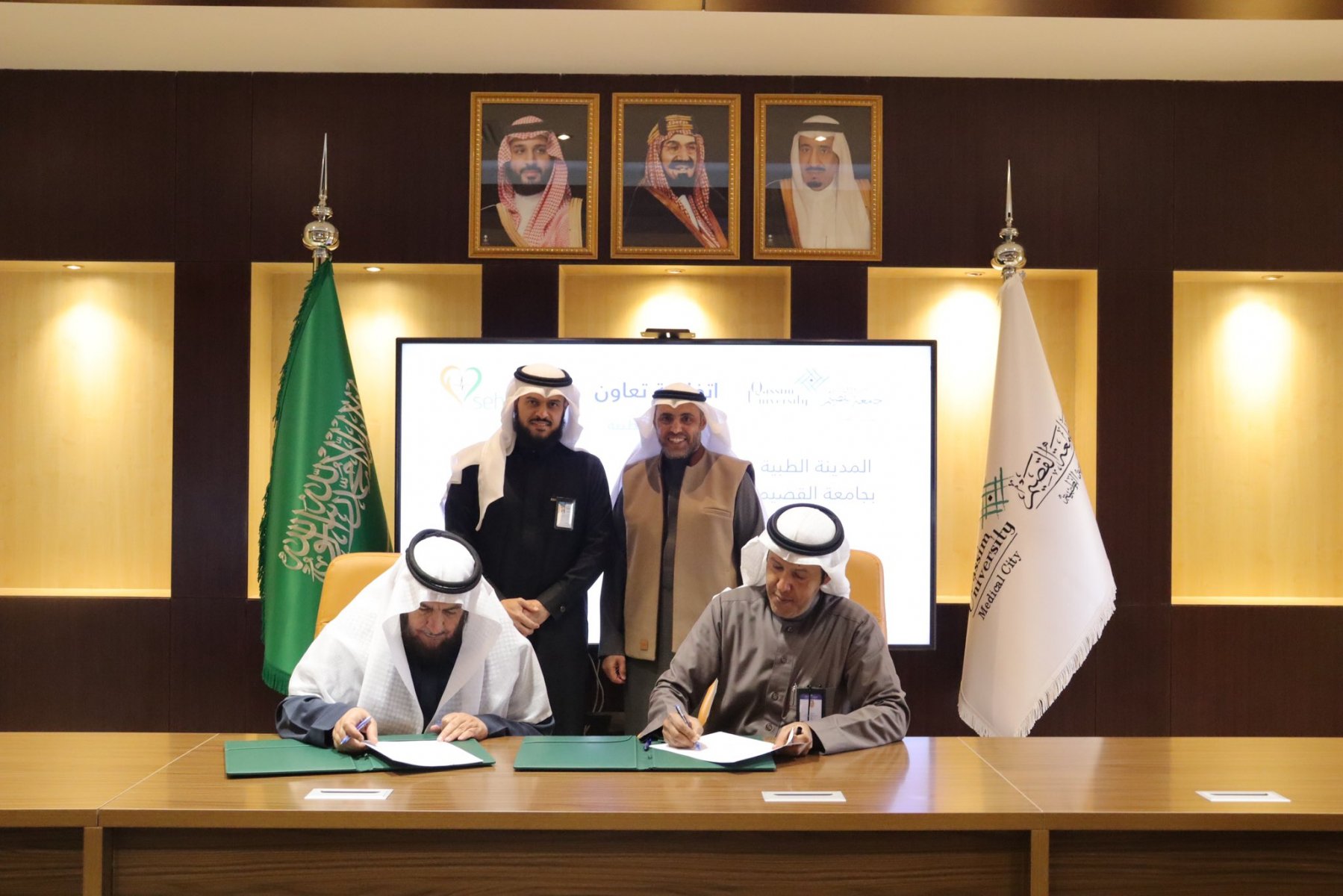 تعزيزًا للتعاون في مجال الرعاية الطبية والتوعية والتثقيف الصحي ، وقع المدير التنفيذي للمدينة الطبية في #جامعه_القصيم الدكتور خالد بن فهد الحصيص والدكتور سليمان بن عبد الرحمن الصقعبي رئيس مجلس الإدارة في #جمعية_صحة_بالقصيم اتفاقية تعاون مشترك . بحضور وكيل جامعة القصيم الدكتور محمد بن عبد الرحمن السعوي والمدير الطبي للمستشفى الجامعي الدكتور محمد بن سليمان أبا الخيل ونائب رئيس مجلس الإدارة بالجمعية الدكتور حميدان بن تركي الحميدان والرئيس التنفيذي للجمعية الأستاذ عمر بن عبد العزيز العليان . وتأتي هذه الاتفاقية في إطار حرص الجمعية على العمل مع مقدمي الخدمات الطبية ذات الكفاءة العالية لخدمة مستفيدها من المرضى ذوي الاحتياج في الرعاية الطبية وكذلك في المساهمة برفع الوعي الصحي لدى المجتمع .